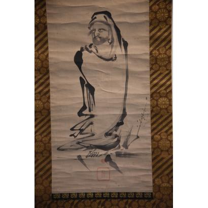 Daruma crossing the Yangzi on a reed