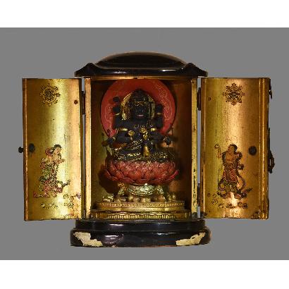 | Object title | Small shrine (J: zushi) with figure of Rāgarāja (J: Aizen Myōō) | Ownership current status | Museum für Kunst und Gewerbe Hamburg | ||