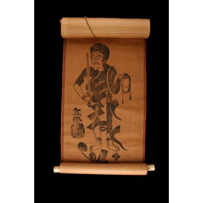 Buddhist image representing Wisdom King Fudō Myōō (S. Acala), holding a vajra and a lasso. The body is represented by a Sanskrit syllable.