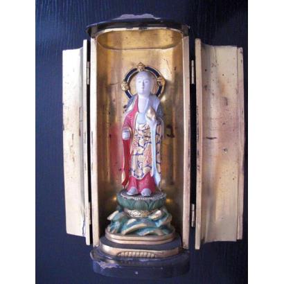| Object title | zushi with standing figure of Jizō Bosatsu | Ownership current status | Historisches und Völkerkundemuseum St. Gallen | ||